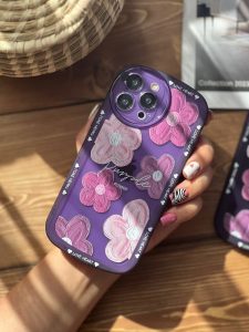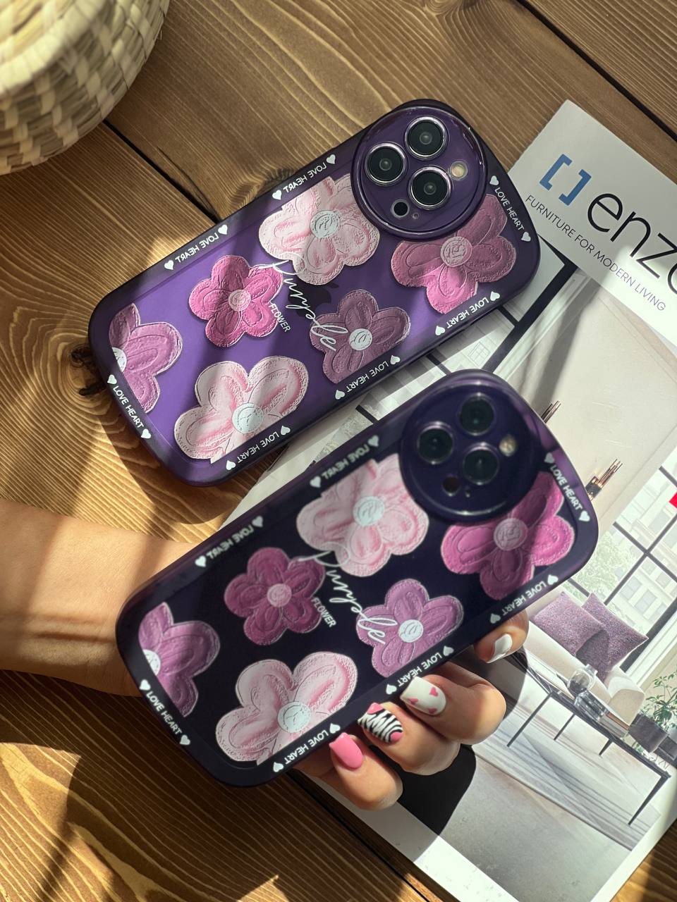قاب موبایل آیفون گل لوندر بنفش آبرنگی محافظ لنزدار