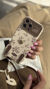 گلهای ریز و ظریف به صورت دقیق روی قاب چاپ شدهاند و رنگهای قهوهای و روشن، هارمونی بسیار چشمنوازی ایجاد کردهاند. این قاب نه تنها یک محافظ گوشی، بلکه یک اکسسوری کامل و شیک است.