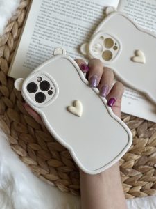 قاب موبایل آیفون گوش قلبی تک قلب کرمی