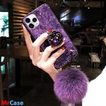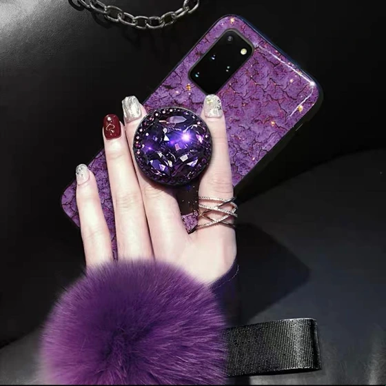 قاب موبایل سامسونگ ماربل پام پام بنفش + پاپ سوکت + پام پام