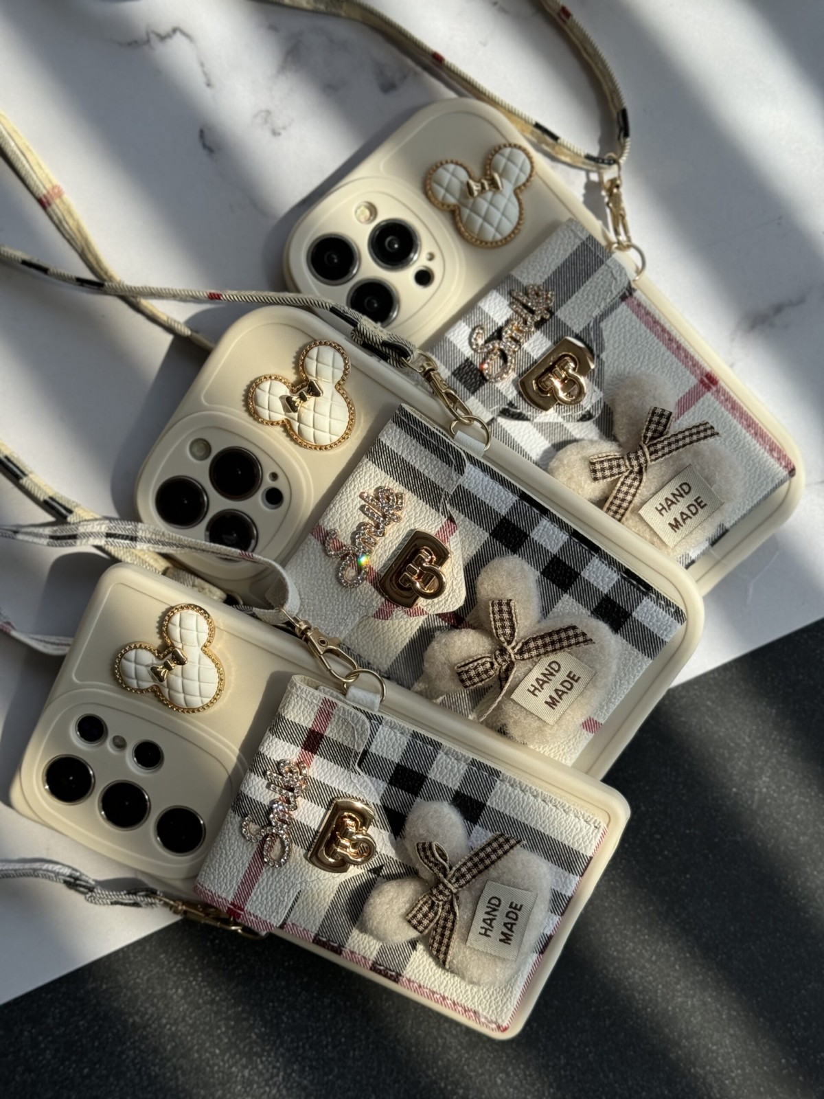 قاب موبایل آیفون دم روباهی پروانه گل سرخ + بندست پشمی