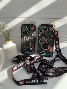 قاب موبایل ( آیفون ) گل رز فلورا قهوه ای + بندست چرمی