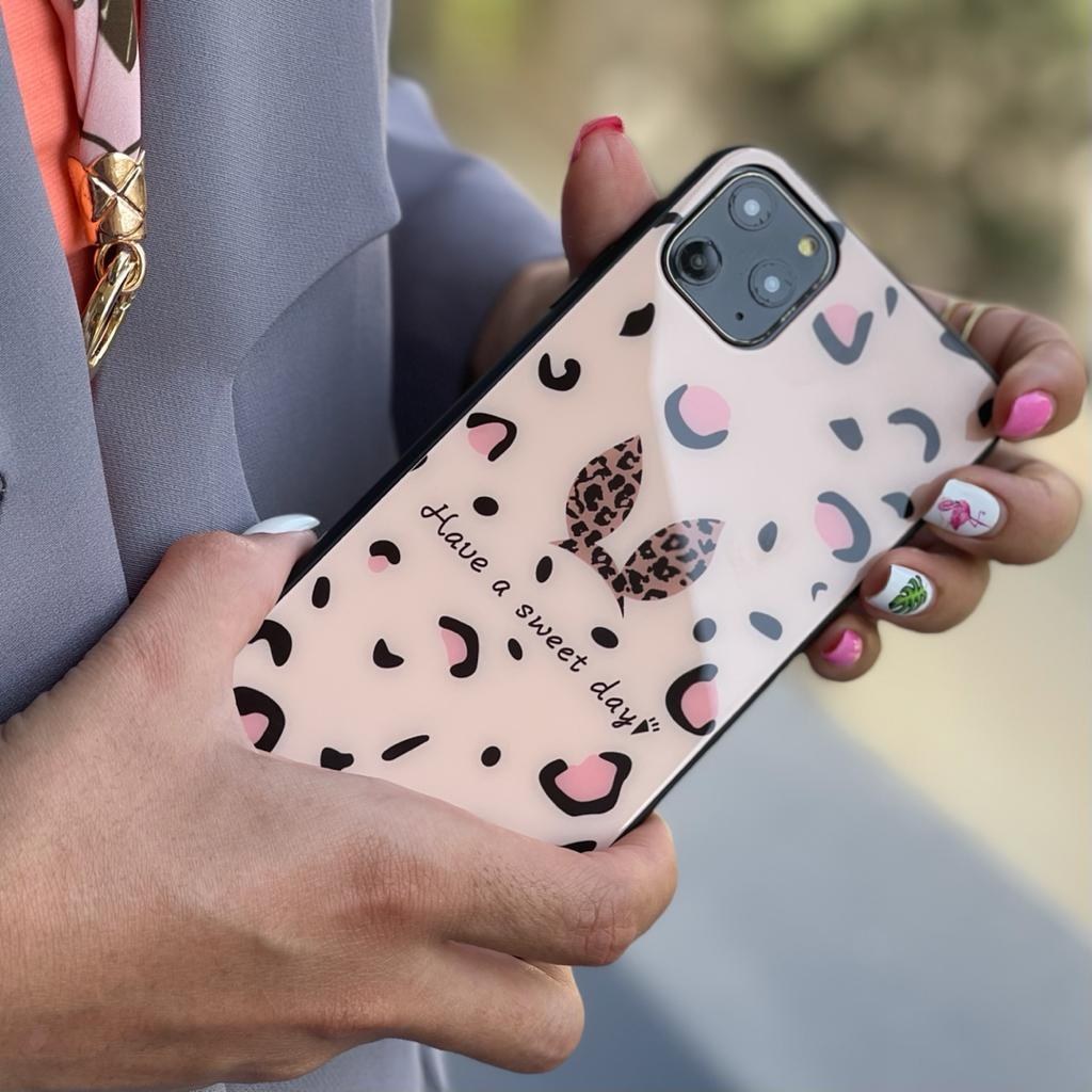 قاب موبایل سامسونگ پلنگ صورتی خرگوشی پشت گلس + بند ست