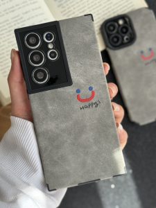 قاب موبایل سامسونگ چرم و جیر طوسی اسمایل محافظ لنزدار