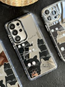 قاب موبایل سامسونگ گربه بلک اند وایت آیینه ای