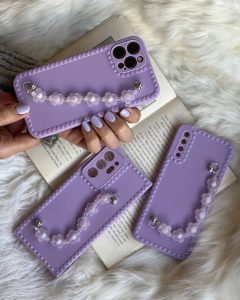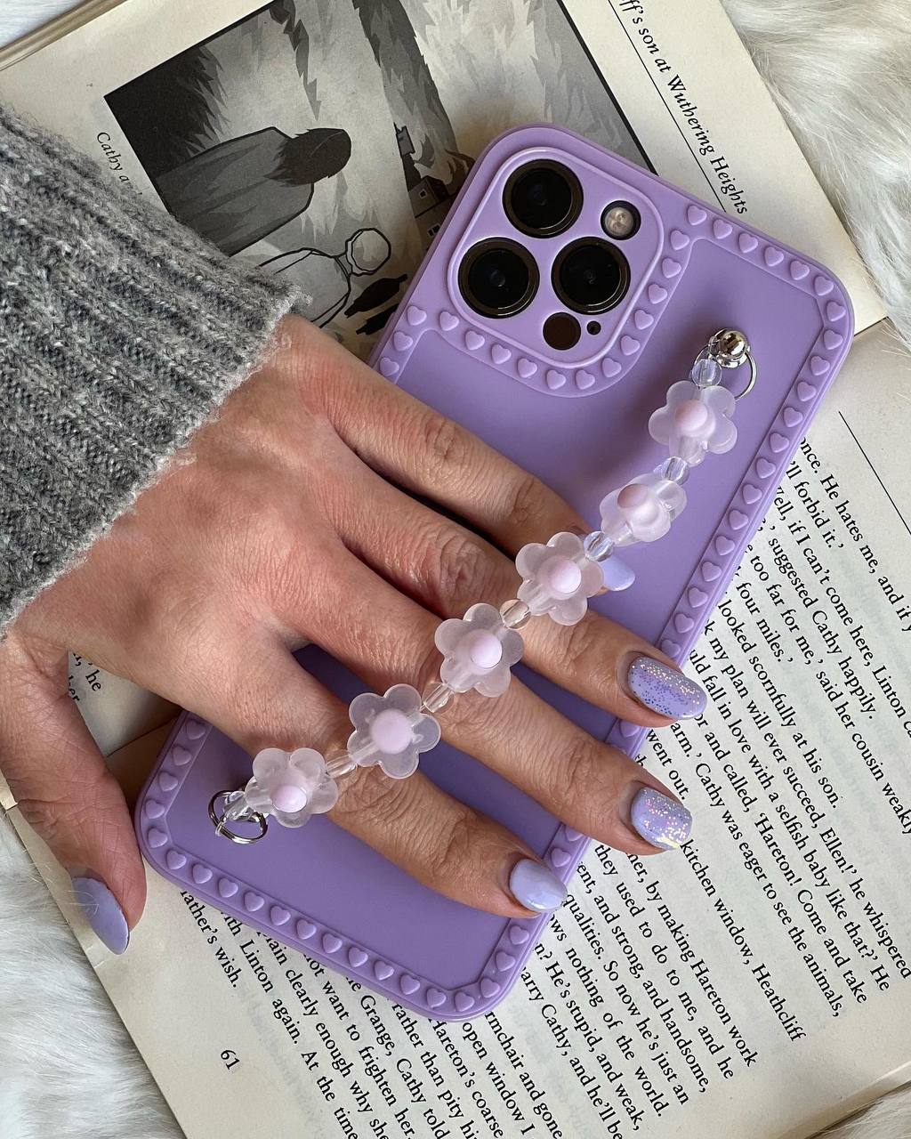 قاب موبایل آیفون گل لوندر بندی یاسی