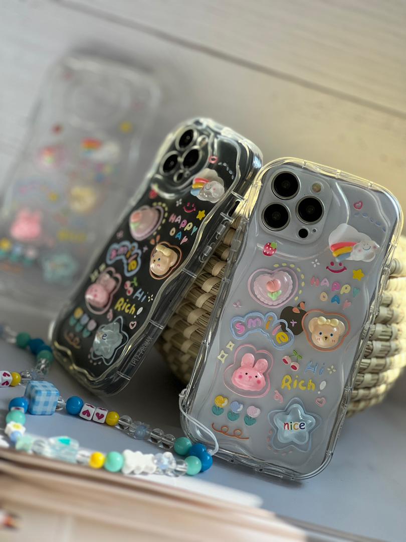 قاب موبایل شیائومی اپوکسی بیرنگ روز شاد خرس و خرگوش برجسته + آویزست