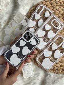 قاب موبایل آیفون بی رنگ قلب سه بعدی