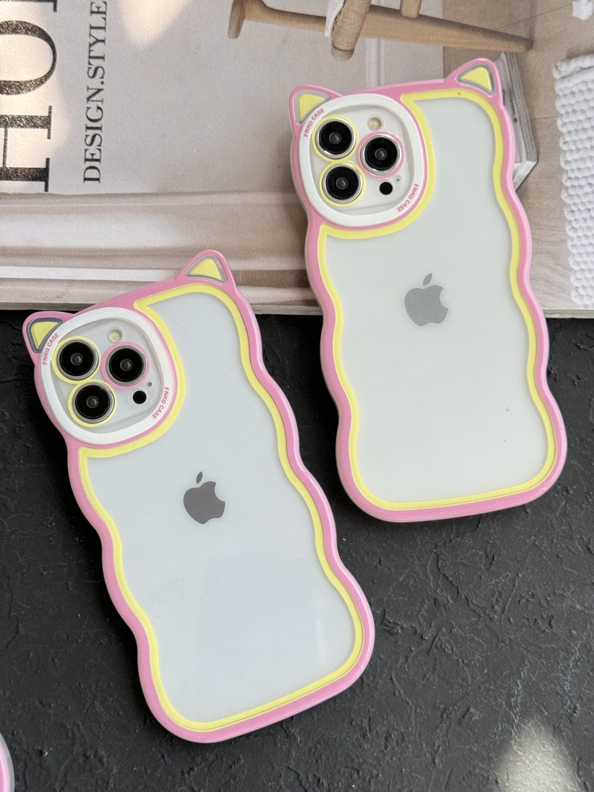 قاب موبایل گربه فنکو صورتی و زرد شفاف
