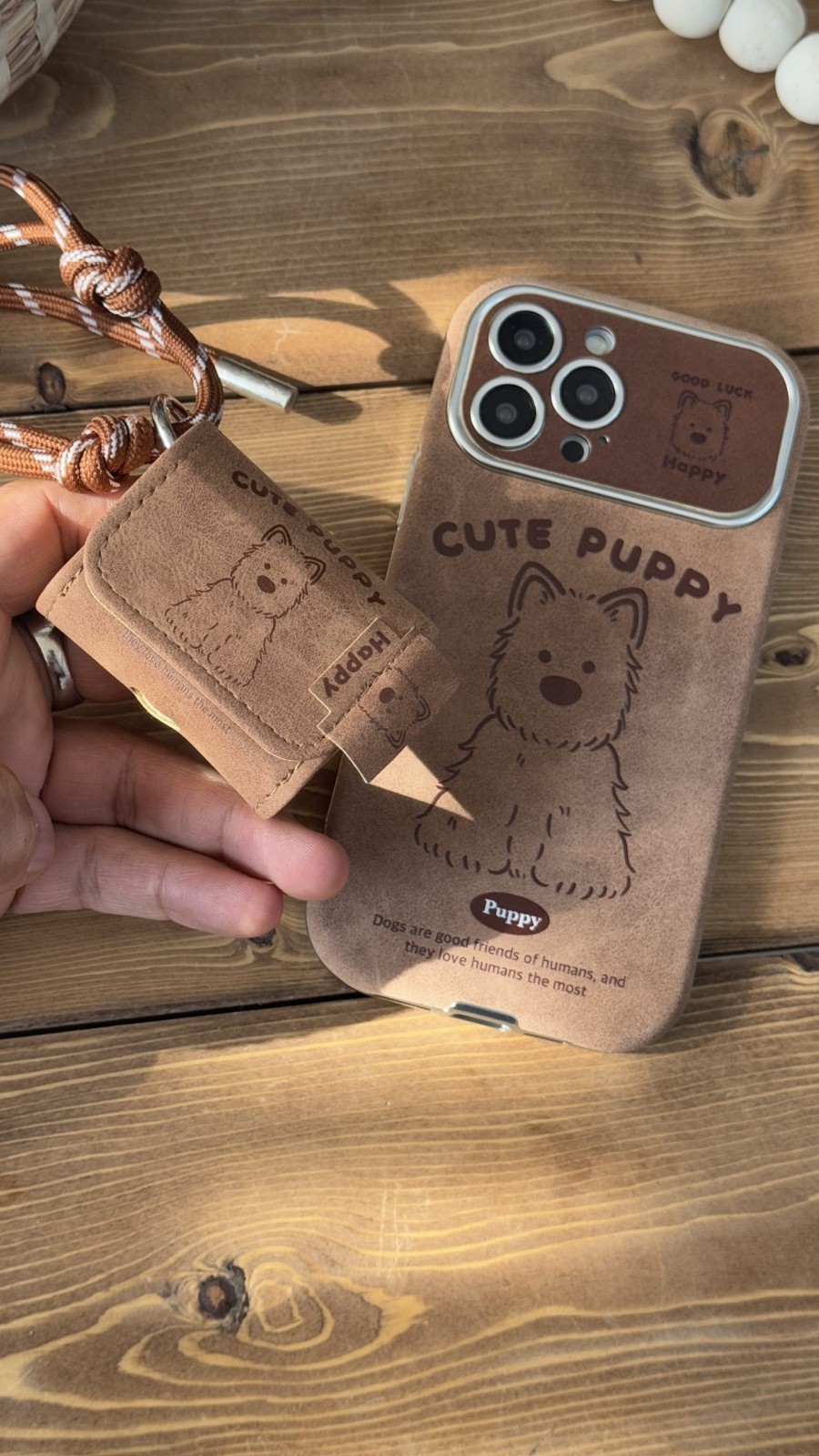 کاور ایرپاد کیوت پاپی چرم قهوه ای سنگشور بدون بند