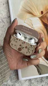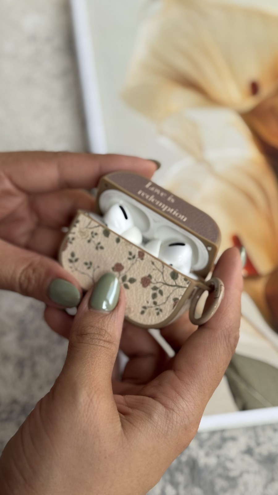 قاب موبایل آیفون گل فلاور کرم فندقی + بند چرمی ست