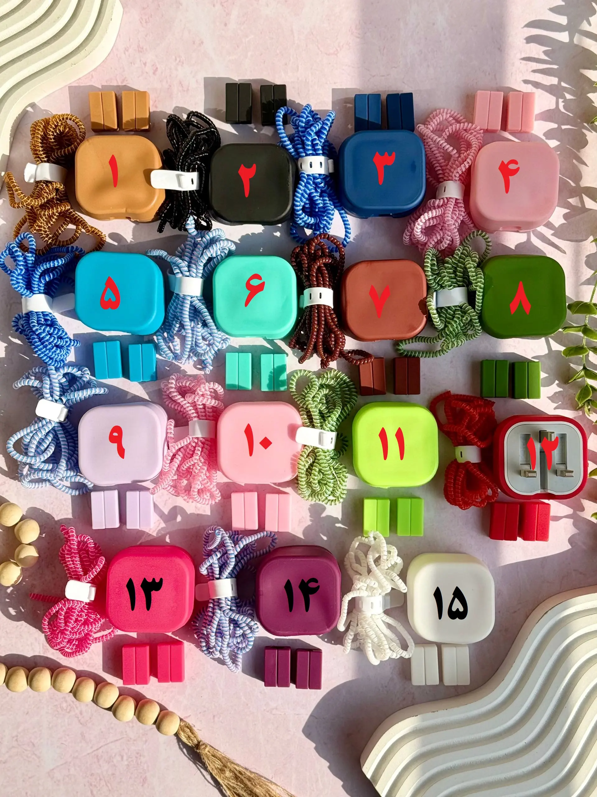 1- نسکافه ای ,10-صورتی آدامسی ,11-سبز فسفری ,12-قرمز ,13-سرخابی ,14-بادمجونی ,15-سفید ,2-مشکی ,3-سرمه ای ,4-صورتی پودری ,5-آبی آسمانی ,6-سبز آبی ,7-قهوه ای ,8-سبز چمنی ,9-یاسی |