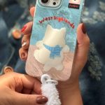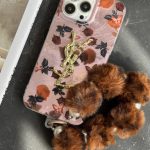قاب موبایل آیفون سن لورن دم روباهی پروانه گل سرخ + بندست پشمی